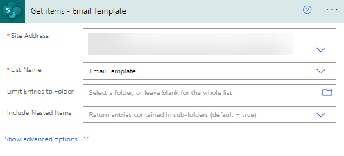 Step:2 Add the “Get Items” action and specify the site address and list name that the user has created Template in the list.