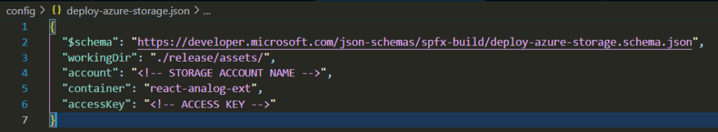 This configuration file is typically used in SharePoint Framework (SPFx) projects to automate the deployment process of assets to Azure Storage.