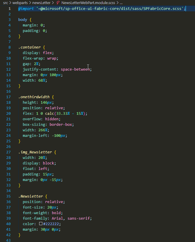 Description:-This file, written in SCSS (Sassy CSS), provides styling instructions for the web part.