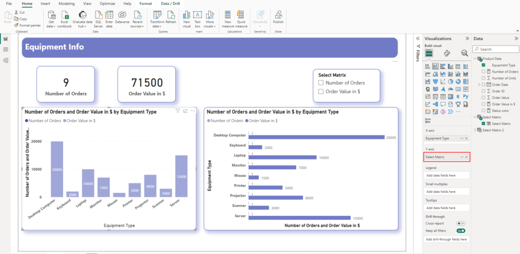 Add columns on axis: Add the created “Select Matrix” to the Y-axis for both graphs.