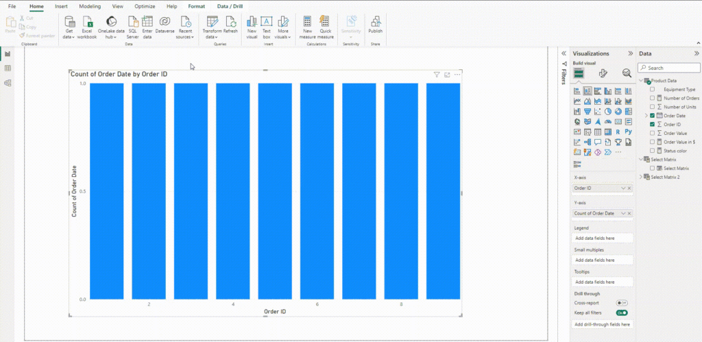 Number of Orders = COUNT(‘Product Data'[Order ID])