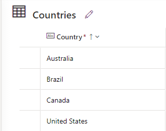To begin, you need to create the necessary Dataverse tables. Start by creating a Country table with a Country Name column of the Single Line of Text type. Populate this table with country names, such as the USA, Canada, and the UK.