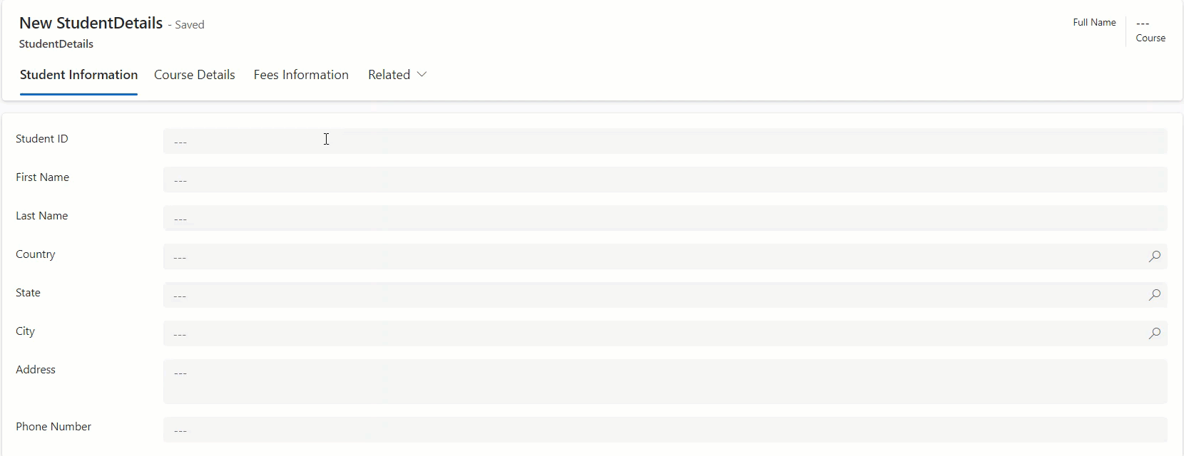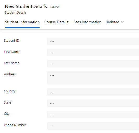 With the foundational tables set, it’s time to create the Main Table, where users will input their details. In this table, include fields for First Name, Last Name, Address, and Phone Number as Single Line of Text columns. Then, add lookup columns for Country, State, and City, each referencing their corresponding Dataverse tables.